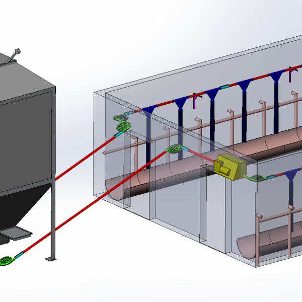 Опуск поилки (труба поения) на один нипель 45 градусов с креплением L-600
